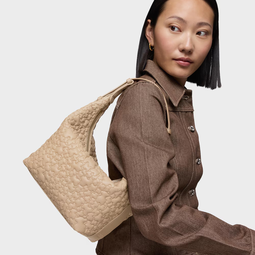 Mala de ombro média TOUS Puffy Bear em poliuretano na cor areia. Fecho de correr. Bolso interior com fecho de correr. Alça de ombro ajustável. Medidas (altura x largura x profundidade): 24 x 32 x 12 cm.