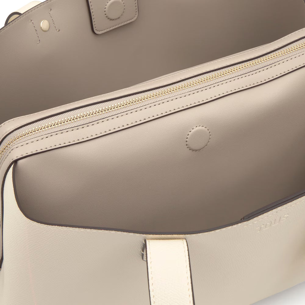 Mala City média The Citybow em poliuretano na cor bege. Fecho com botão magnético. Bolso interior com fecho de correr. Alça fixa de ombro. Medidas (altura x largura x profundidade): 19 x 39 x 24 cm.